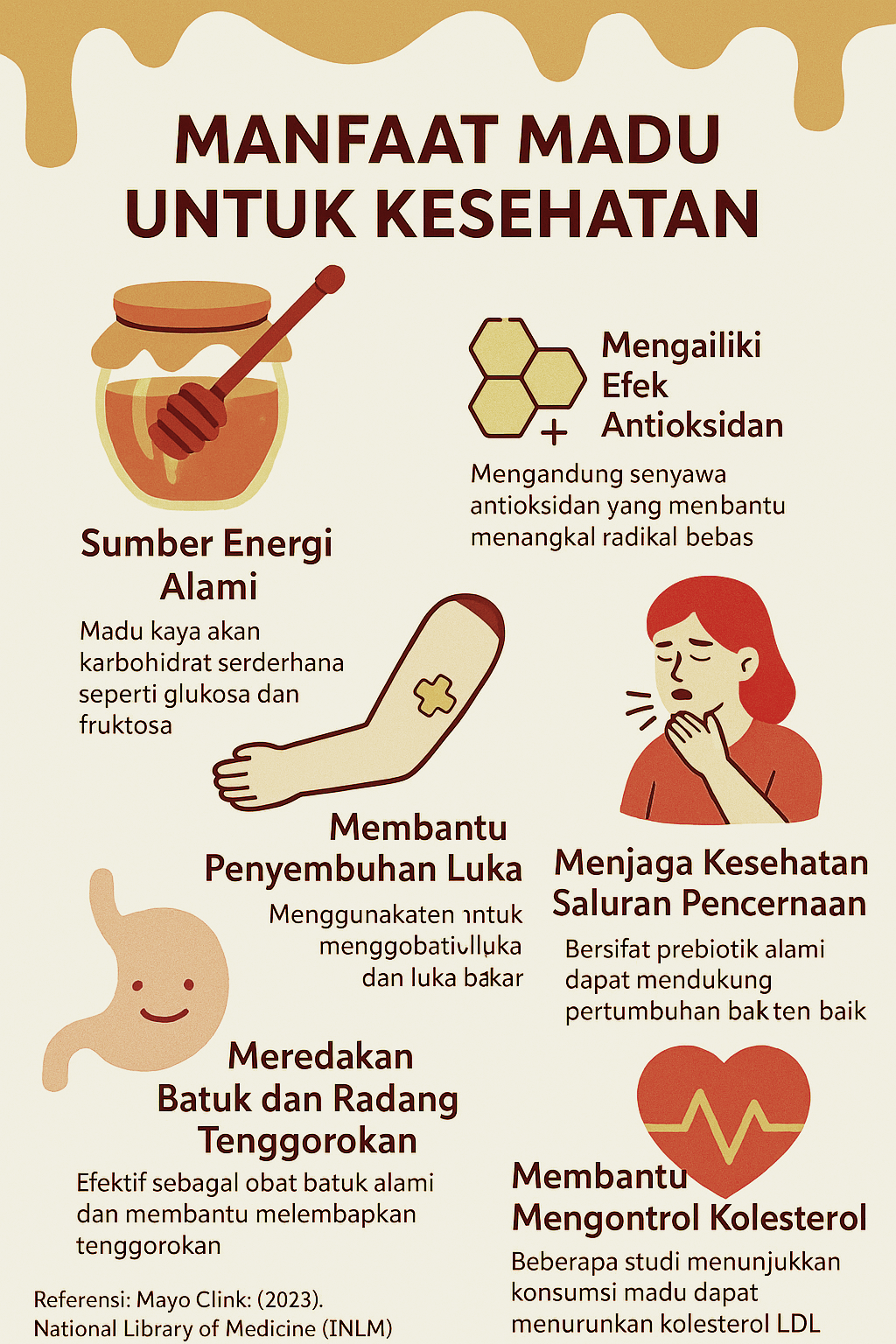 Berikut adalah penjelasan lengkap tentang manfaat madu bagi kesehatan tubuh, didukung oleh referensi ilmiah.