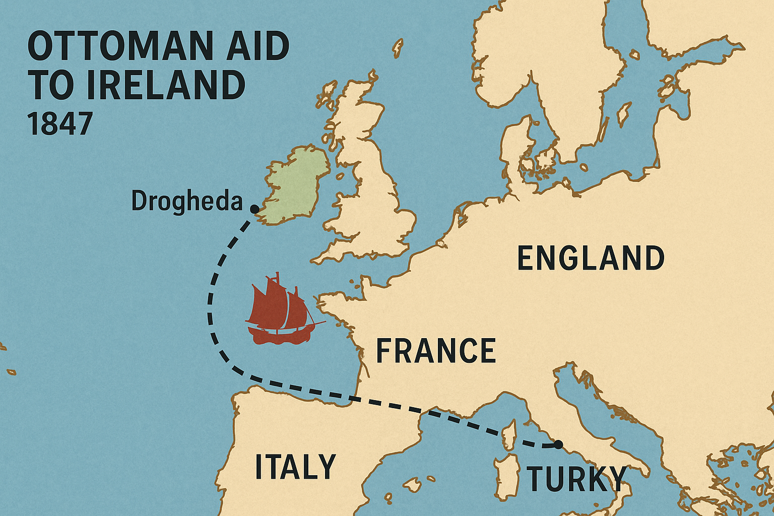 Sultan Abdulmejid I (memerintah 1839–1861), pemimpin Kesultanan Turki Utsmaniyah saat itu, dikenal karena empati dan keinginannya membantu rakyat Irlandia yang menderita kelaparan.